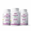 - Pack with 3 supplements in veggie caps: Magnesium Bisglycinate 175 mg (120 veg caps), GABA 500 mg (120 veg caps), and Valerian Extract 5:1 500 mg with vitamin B3 (120 veg caps).