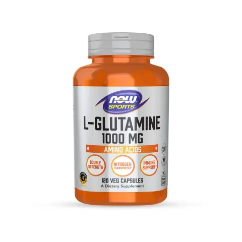 L-Glutamine 1000mg from Now Foods is a dietary supplement made with L-glutamine in veggie capsules.