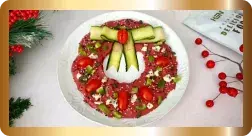 A healthy, original, and colorful appetizer for the holidays. This beet hummus wreath will be the center of attention on your table.