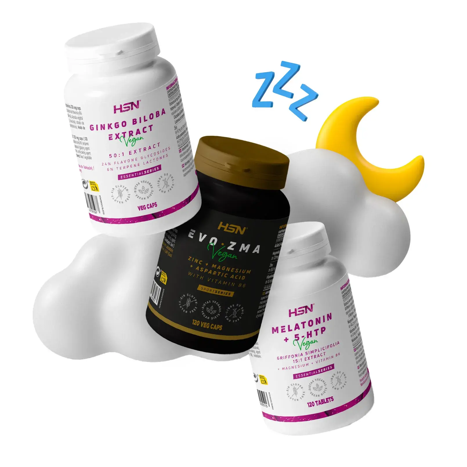 - Melatonina + 5-HTP, que regula el sueño y apoya el sistema nervioso.