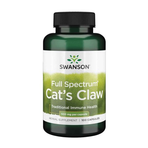 Full Spectrum® Garra de Gato 500mg od Swanson to suplement diety na bazie kory kociego pazura (Uncaria tomentosa) z formułą Full Spectrum® w kapsułkach.
