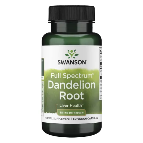 Full Spectrum® Korzeń mniszka lekarskiego 515mg od Swanson to suplement diety w kapsułkach roślinnych, oparty na korzeniu mniszka lekarskiego.