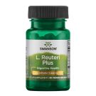 Lactobacillus Reuteri Plus 7 mld CFU + 200 mg FOS od Swanson to suplement diety w kapsułkach roślinnych, oparty na FOS i 3 szczepach bakterii fermentujących.
