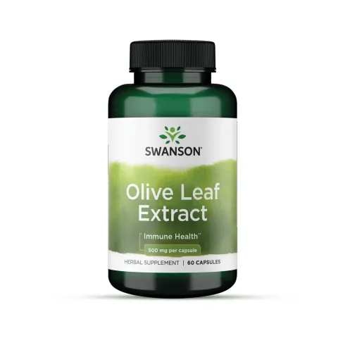 Ekstrakt z liści oliwki 500mg od Swanson to suplement diety na bazie liści oliwki, standaryzowany na 20% oleuropeiny w kapsułkach.