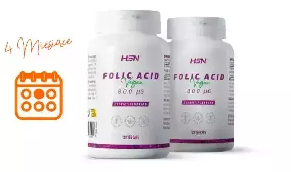 - Kwas foliowy 800 mcg w kapsułkach roślinnych, odpowiedni dla diet wegetariańskich i wegańskich, nietolerancji pokarmowych i nieprzetworzony genetycznie. Zapewnia spokój, zaspokajając potrzeby związane z ciążą w jednym dziennym spożyciu przez 4 miesiące.